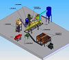 (3) Изсушаване За суровини, които имат влажност повече от 12 % е необходимо да се инсталира сушилня. Там суровината се изсушава до влажност под 12 %. В сушилнята с висока скорост се подава горещ въздух до 250 0С. Получава се обмен между горещия въздух и суровината. В сушилния процес чистият студен въздух се нагрява в горивна камера (поз.3.1) и се подава към сушилнята. Чрез спирална захранваща система – поз.3 /сушилня шнекова/ навлажненият материал, размесен с горещия въздух се транспортира до разтоварващия блок (поз.3.2). Изсушеният материал се разтоварва с циклон-филтър, а използваният въздух се освобождава в атмосферата.
