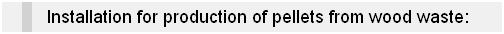 Production of pellets from wood biomass is renewable, energy saving and environmental technology. As raw materials for this installation can be used: - sawdust; - waste from the forest - brush, branches, bark.